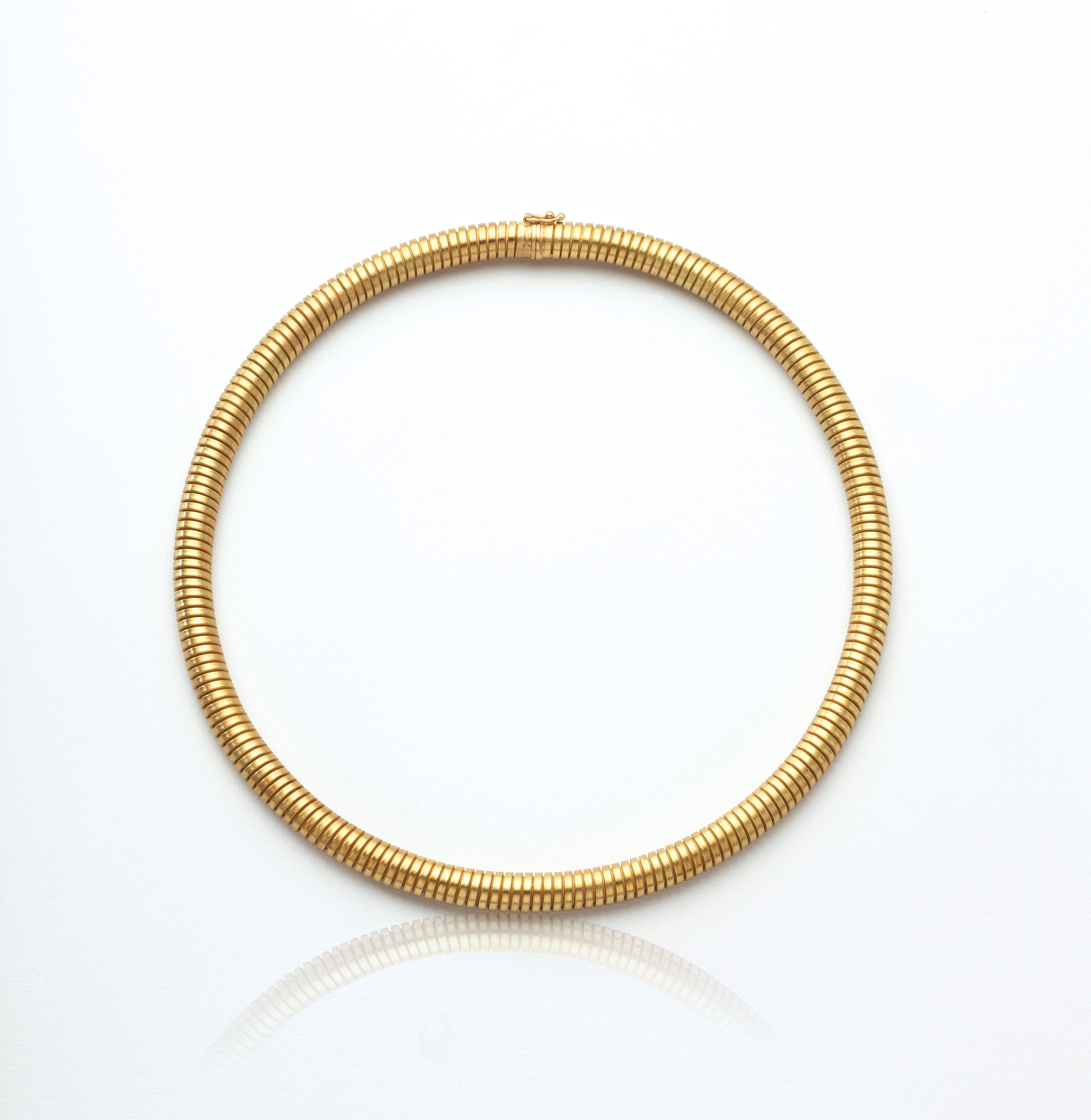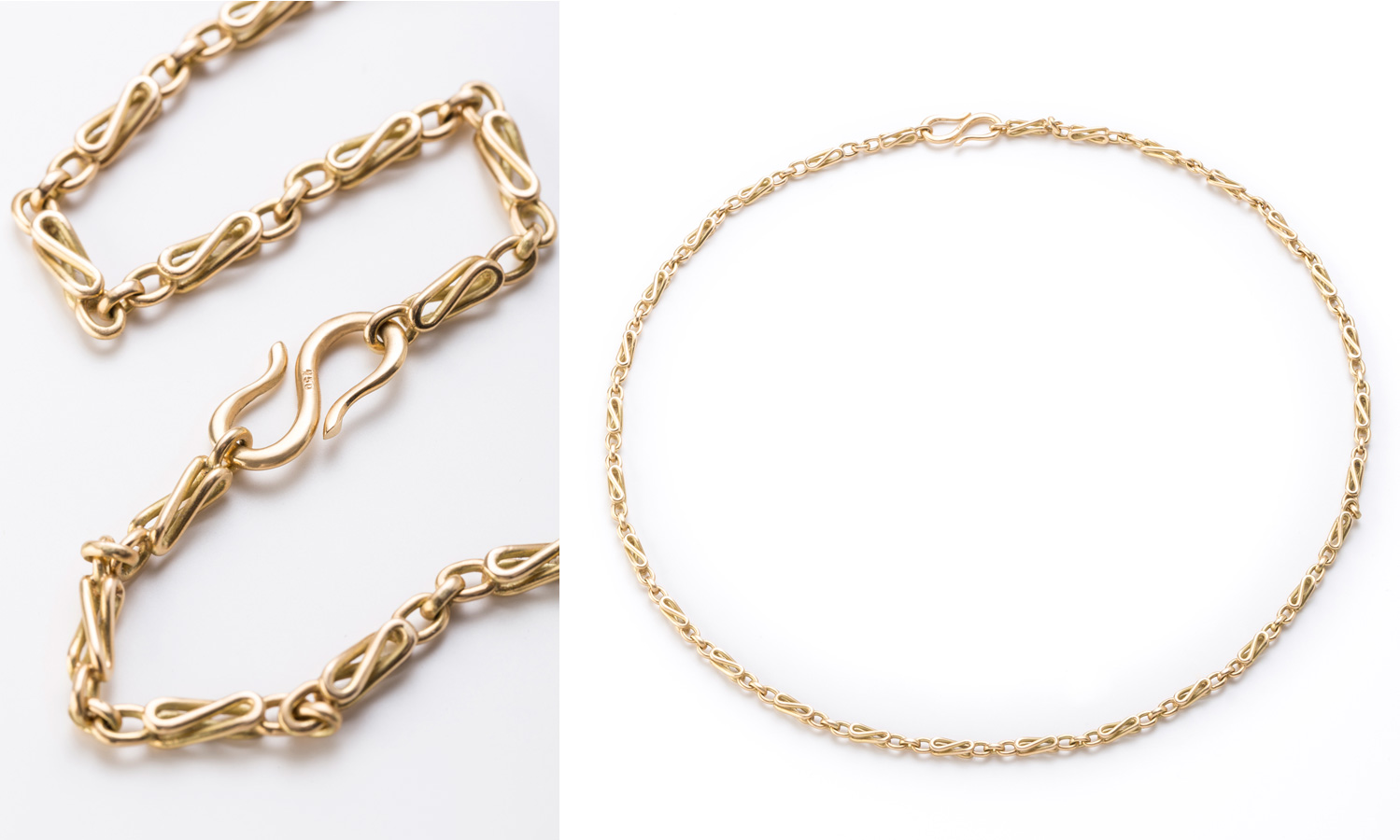 Der Glanz der Versuchung fasziniert mit purem Gold und der handwerklichen Kunst des Kettenschmiedens. Unzählige fein gearbeitete Glieder verbinden sich z.B. zu imposanten Halsketten, die mit ihrer anschmiegsamen Flexibilität sanft das Dekolleté umfließen. Daneben gibt es zahlreiche Kreationen von Ringen mit verschiedenen Steinen.